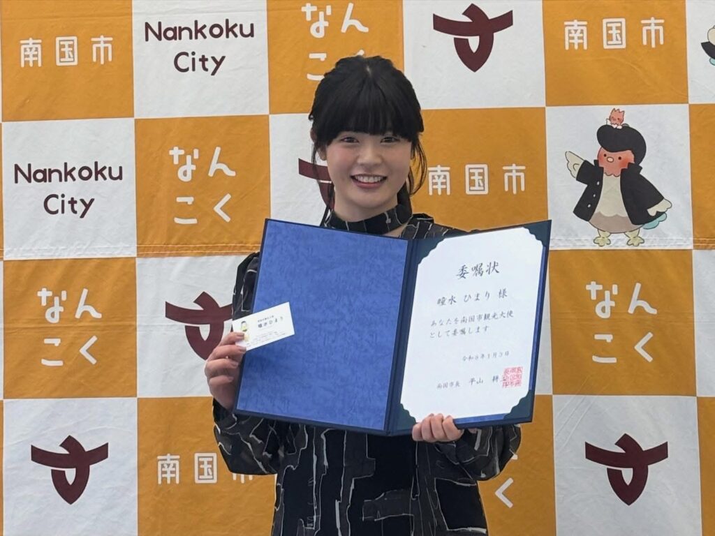 成人式に先立って、南国市出身の俳優、瞳水ひまりさんの南国市観光大使委嘱式もおこなわれました。