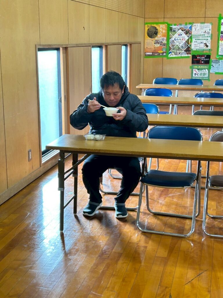外は雪がちらつくほど寒い日だったので、地域の方が作ってくれた豚汁は本当においしく、体も温まりました。
